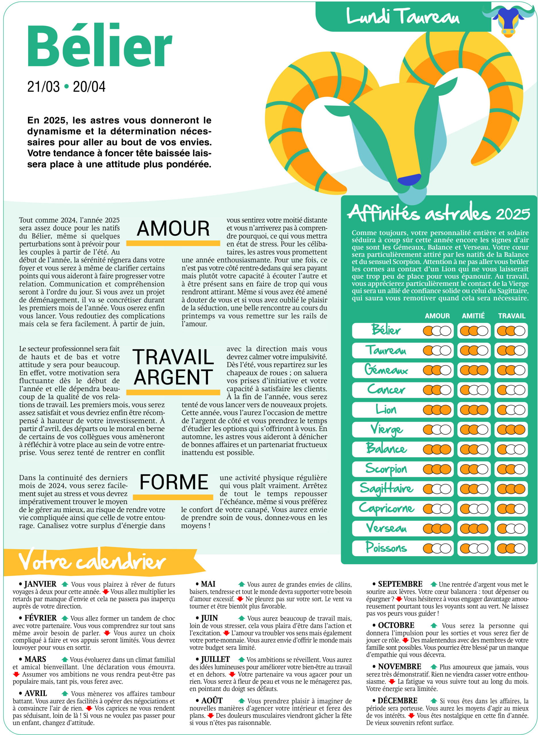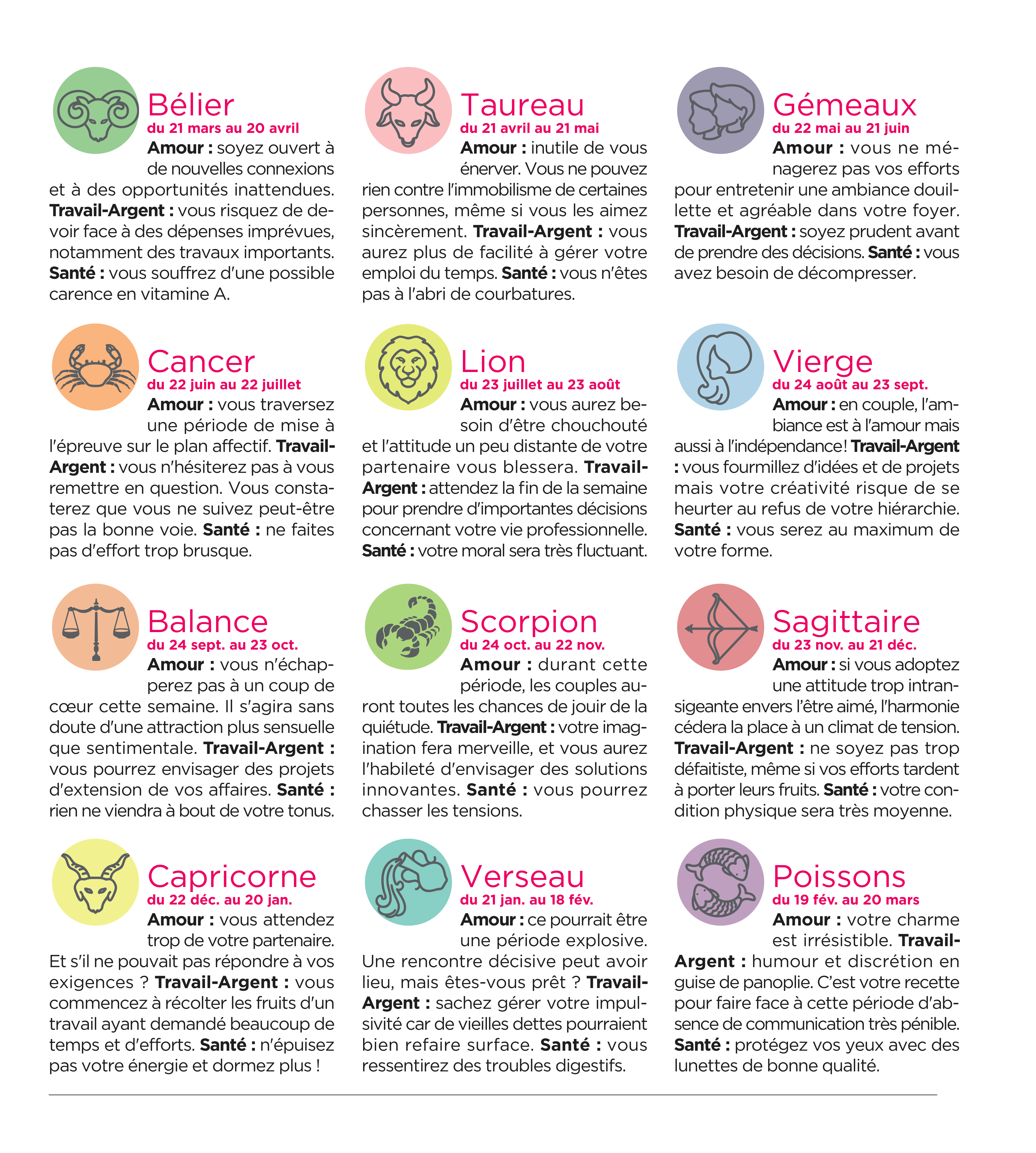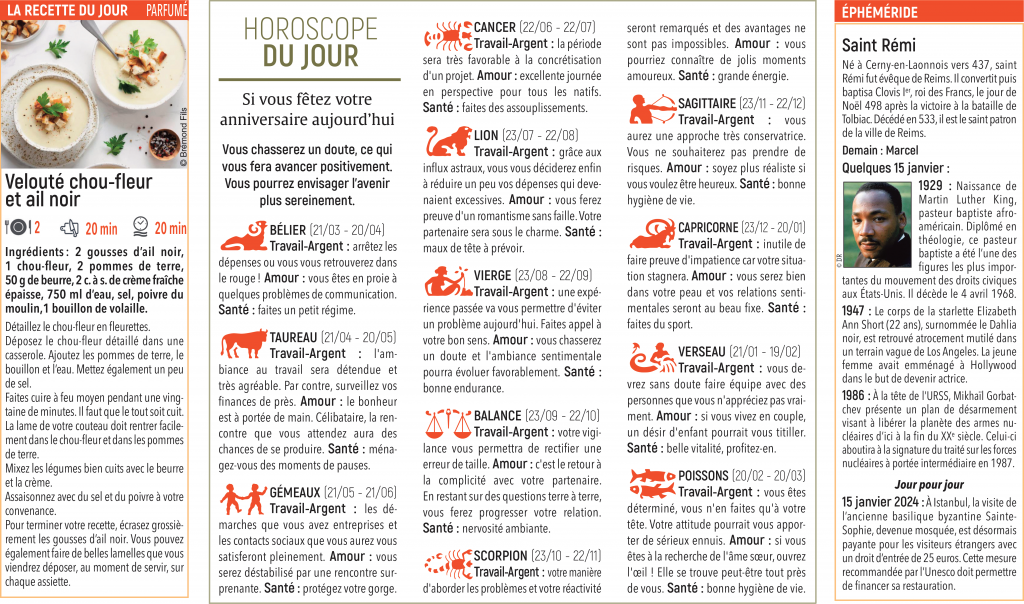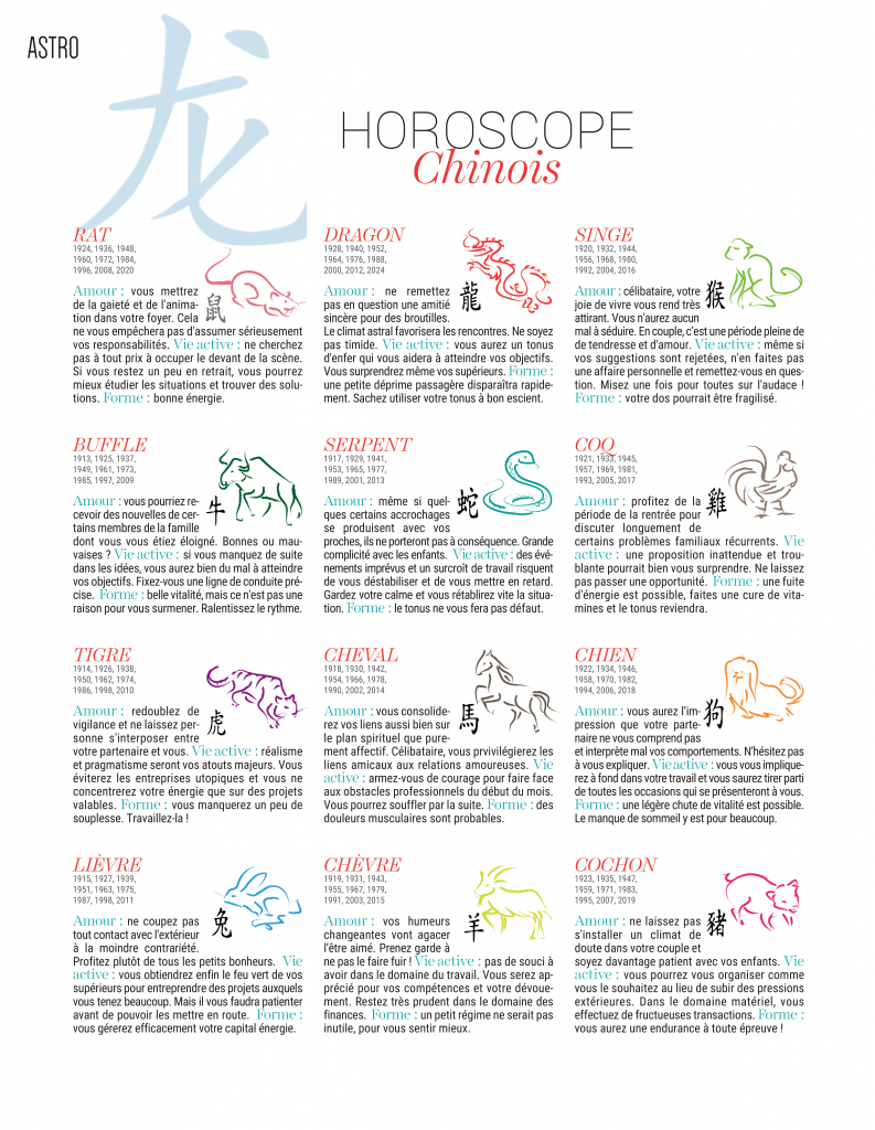 Horoscope Ce que les astres réservent à vos lecteurs Des prévisions adaptées à votre périodicité (horoscope quotidien, hebdo, mensuel) et à votre lectorat (féminin, masculin).Différents thèmes au choix : zodiaque, chinois, numérologie contactez-nous Cahiershoroscopeannuels En fin d’année, retrouvez nos cahiers horoscope zodiaque et chinois prêts à imprimer sur commande.