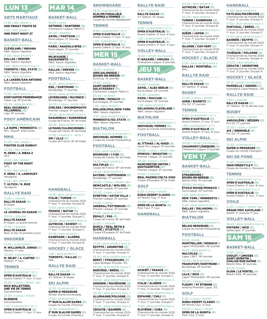 • Des modules de programmes TV sportifs à intégrer à vos pages sport