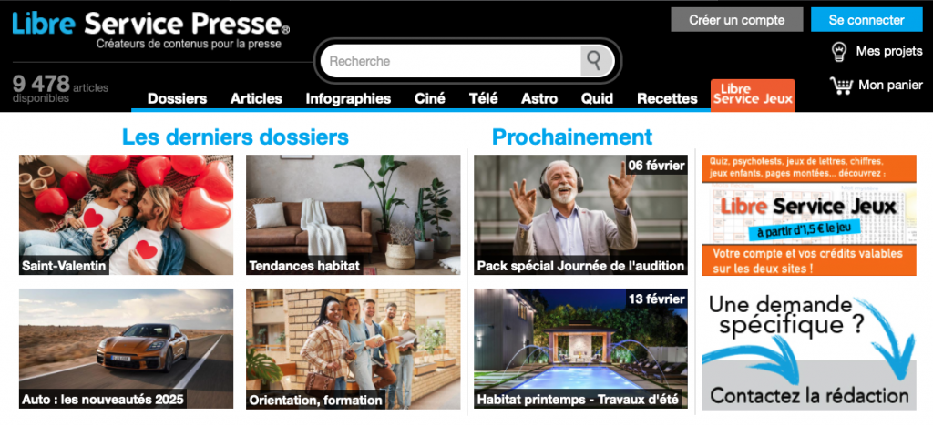 Retrouvez plus de 9 000 articles disponibles sur notre plateforme de contenus rédactionnels Libre Service Presse pour alimenter vos pages ou composer vos suppléments thématiques.